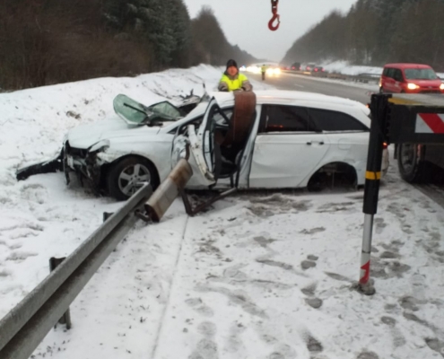 Laut Polizei ereignete sich der Unfall am Samstag gegen 7.15 Uhr, der 34-jähriger Fahrer war Richtung Würzburg unterwegs, als er ins Schleudern kam und zunächst gegen die Mittelschutzplanken und dann über die Fahrbahn schleuderte. Grund war laut Polizei den Witterungsverhältnissen nicht angepasste Geschwindigkeit. Der Schaden wird auf 12 500 Euro geschätzt.